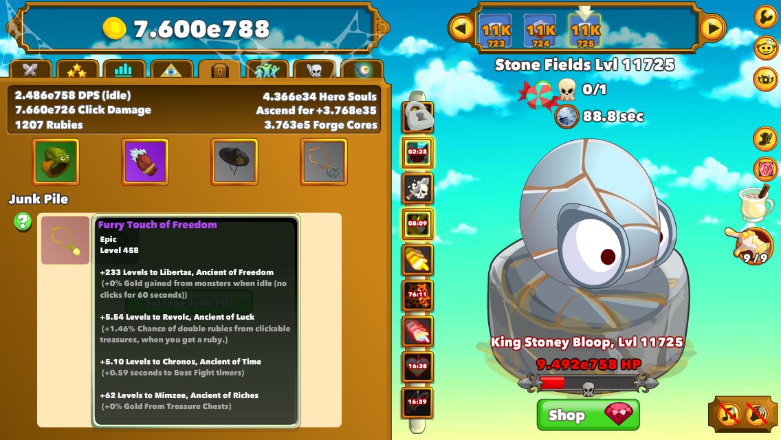 Clicker heroes ruby guide - psac.bostontech.de Clickables. Small Gold Pile - Small boost of gold. Large Gold Pile - Large boost of gold. Orange Bird ... Let's Journey 2 Clicker Heroes Unlimited Rubies Copy And Paste The hack asks no personal information about the gamer Lil Rooster is an incremental clicker idle game Clicker Heroes. auto clicker extension from chrome web store How to ... Clicker Heroes 2 - Newbies Guide (Tips and Tricks) - Gameplay.tips Clickables Small Gold Pile - Small boost of gold. Large Gold Pile - Large boost of gold. Orange Bird - Massive boost of gold and rubies! Energy Tower - Boost of Energy. Mana Tower - Boost of Mana. World Explanations So the world itself is one of the focuses of the game and follows a strict layout. Clicker Heroes Save Game Editor - ItsHax.com Add hero souls Reset all your cooldowns at once Reset your primal bosses Reset the gilded heroes your primal bosses will give Increase your critical hit chance Increase your critical hit multiplier Unlock all your ancients at once without gambling your souls away Add free respecs of Ancient Hero Souls Permanently active buff-skills Clickables | Clicker Heroes 2 Wiki | Fandom A clickable (or "Clickable Treasure") is an occasional object that can be clicked on to gain free resources, like Gold or extra Energy. They have a chance of appearing on either side of the path of which the player's Hero fights, and if certain types of Clickables are missed they then have a chance to become preserved in a bubble.