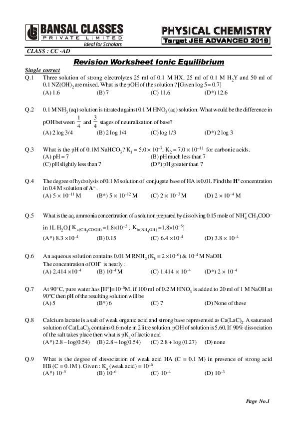 PDF) PC Ionic Equilibrium ADV-CC (E) Ans | RNM rnm - Academia.edu