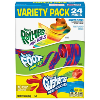 Fruit Gushers Variety Pack - Fruit Snacks - Fruit Gushers No artificial flavors and just 80 calories. HEALTHY SNACK: Gushers are a good source of vitamin C and only contain 80 calories per pouch GLUTEN FREE: Fruit-flavored, gummy treats are gluten free, gelatin free, kosher and made with no artificial flavors ENDLESS OPTIONS: Try other Gusher flavors including tropical, punch berry and more