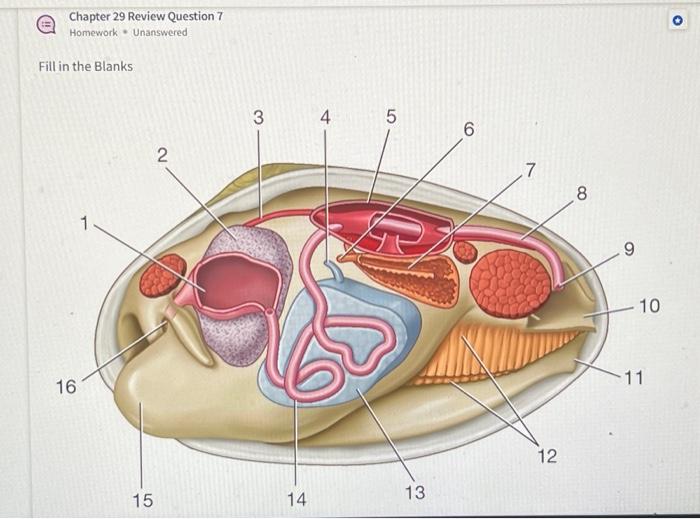 Solved 4 5 7 6 This is a diagram of a dissected clam. | Chegg.com Biology questions and answers. 4 5 7 6 This is a diagram of a dissected clam. [Blank #1] To what phylum do these organisms belong? (Blank #2] Name the structure labeled 4. [Blank #3] Name the structure labeled 5. (hint: this one of 2 structures that hold the shells closed when you try to pry them open) [Blank #4] Name the structure labeled 6.