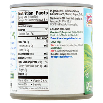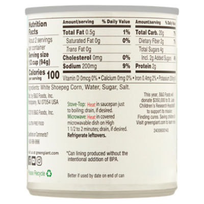 Green giant canned corn nutrition label