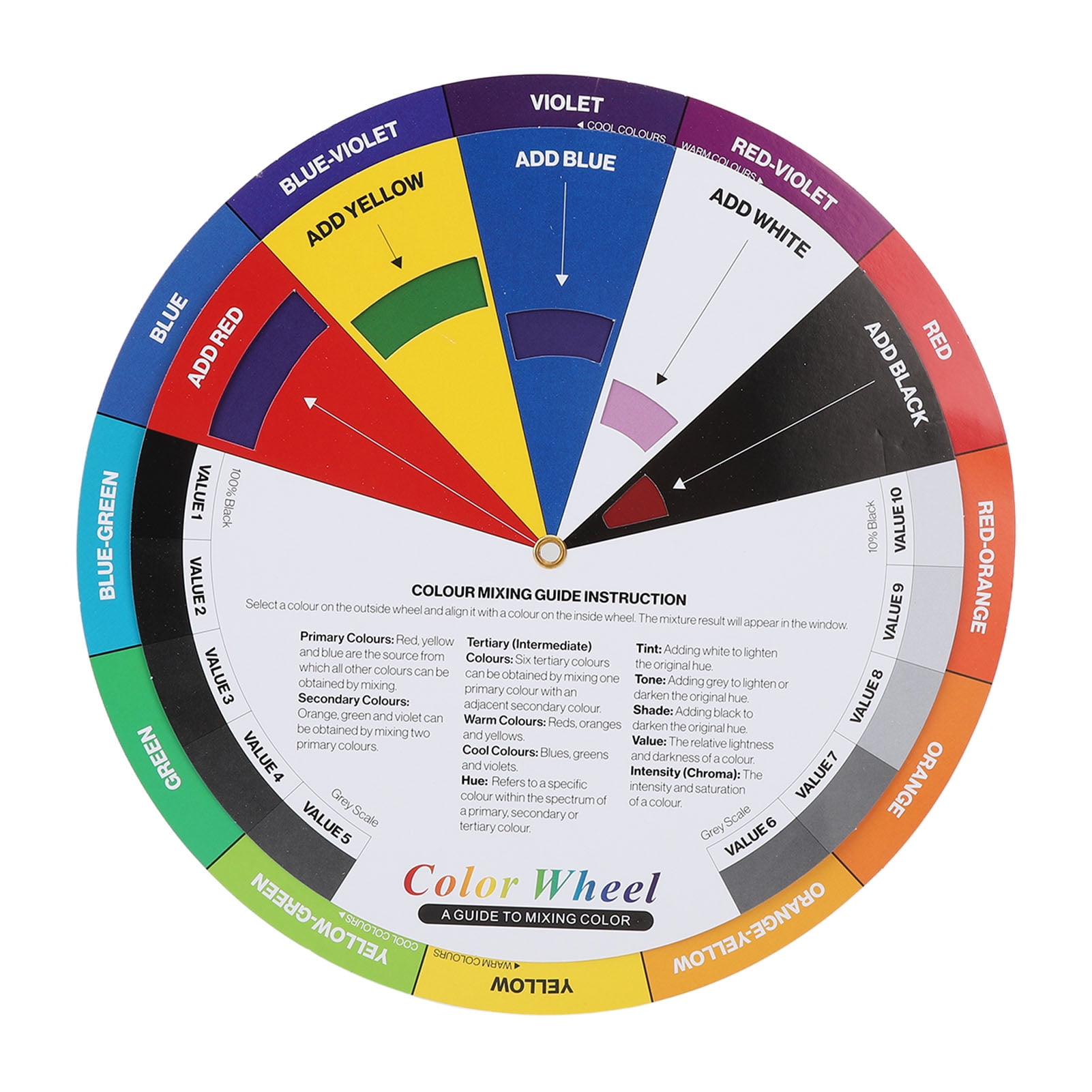 What is a Color Wheel Diagram? - Study.com The primary colors found on color wheels are the following: Yellow, Yellow-Green, Green, Green-Blue, Blue, Blue-Violet, Violet, Red-Violet, Red, Red-Orange, Orange, Yellow-Orange. There is a...