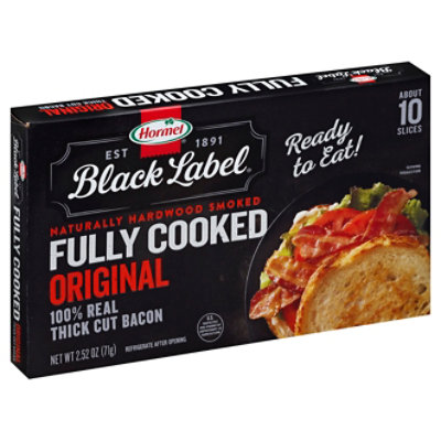 BLACK LABEL Jalapeno Bacon - Instacart HORMEL BLACK LABEL Jalapeno Bacon provides the bold taste of jalapeño paired with enticing chili and southwestern flavor. We hand cut and trim our quality cuts of meat for thick cut slices that don't break apart. It's easy to cook and easy to add to any recipe - from breakfast to burgers and sliders to dinner casseroles (and even desserts!). Hormel Black Label Fully Cooked Bacon (72 Slices) - amazon.com Hormel Black Label Fully Cooked Bacon has the great taste of regular bacon without the mess. It has been fully cooked for your convenience, making it ready to eat immediately. Hormel Black Label Fully Cooked Bacon does not require refrigeration until after opening, making it a great option to stock up for camping food or to store in the pantry ...