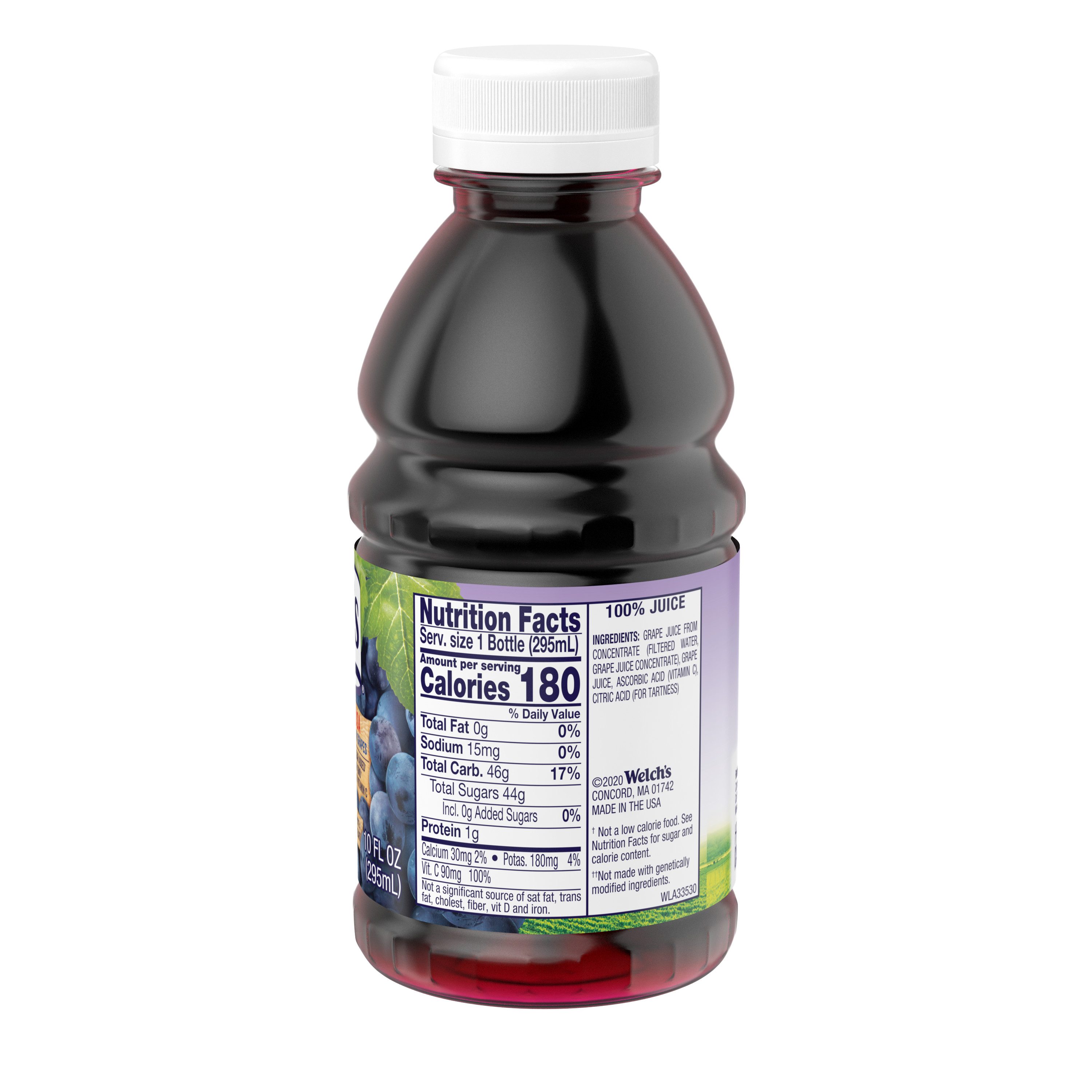 Welch's Grape Juice Drink, 10 fl oz On-the-Go Bottle (Pack of 6 ... A delicious grape drink, in a perfect on-the-go size. Every bottle of Welch's Grape Drink provides 100% Daily Value of Vitamin C, with no artificial flavors, red 40 or preservatives. And you can feel great about buying Welch's, because we're owned by family farmers who have been farming their land for as many as seven generations.