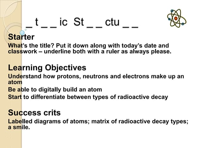 Atomic Structure Worksheets - Easy Teacher Worksheets The parts of the atom are the proton, neutron, and electron. The protons and neutrons inhabit the atom's nucleus (or center), while electrons spin around the outside of the nucleus. Every living thing is made of atoms. Since atoms are part of all living and non-living things, they are crucial to scientific study. PDF Atomic structure worksheet answer key label the parts of an atom on the ... the diagram below. The name of the period atomic structure of the sheet labels the part of the atom on the diagram below. This means a positive charge of the protons and a negative charge of electrons to undo each other resulting in an electrically neutral atom. In addition, we also came up with more related ideas such as labeling parts of the ...